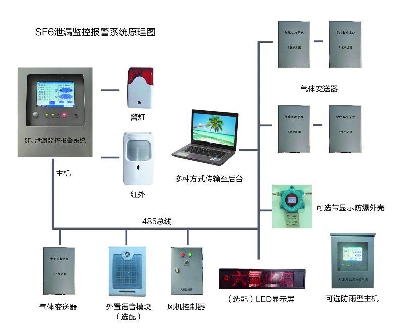 本系统可为广泛应用于各种电压等级的SF6开关室、组合电气室(GIS室)、SF6主变室等。